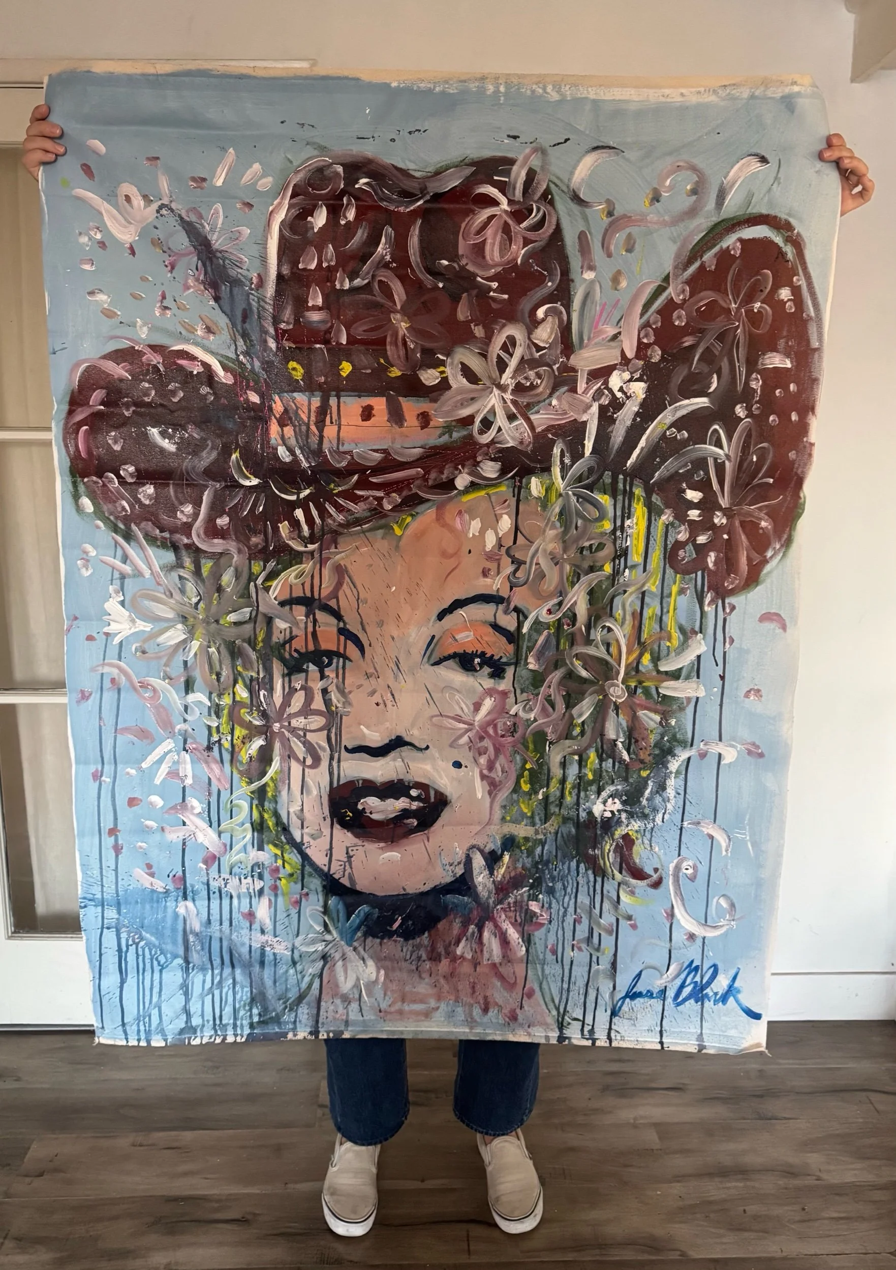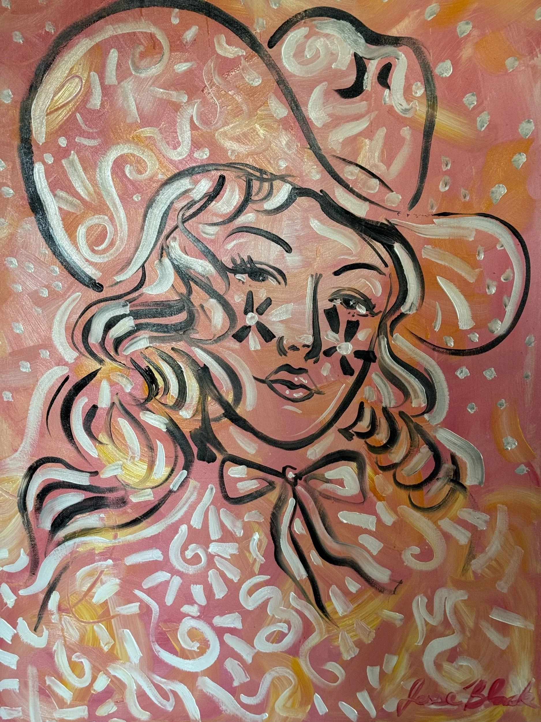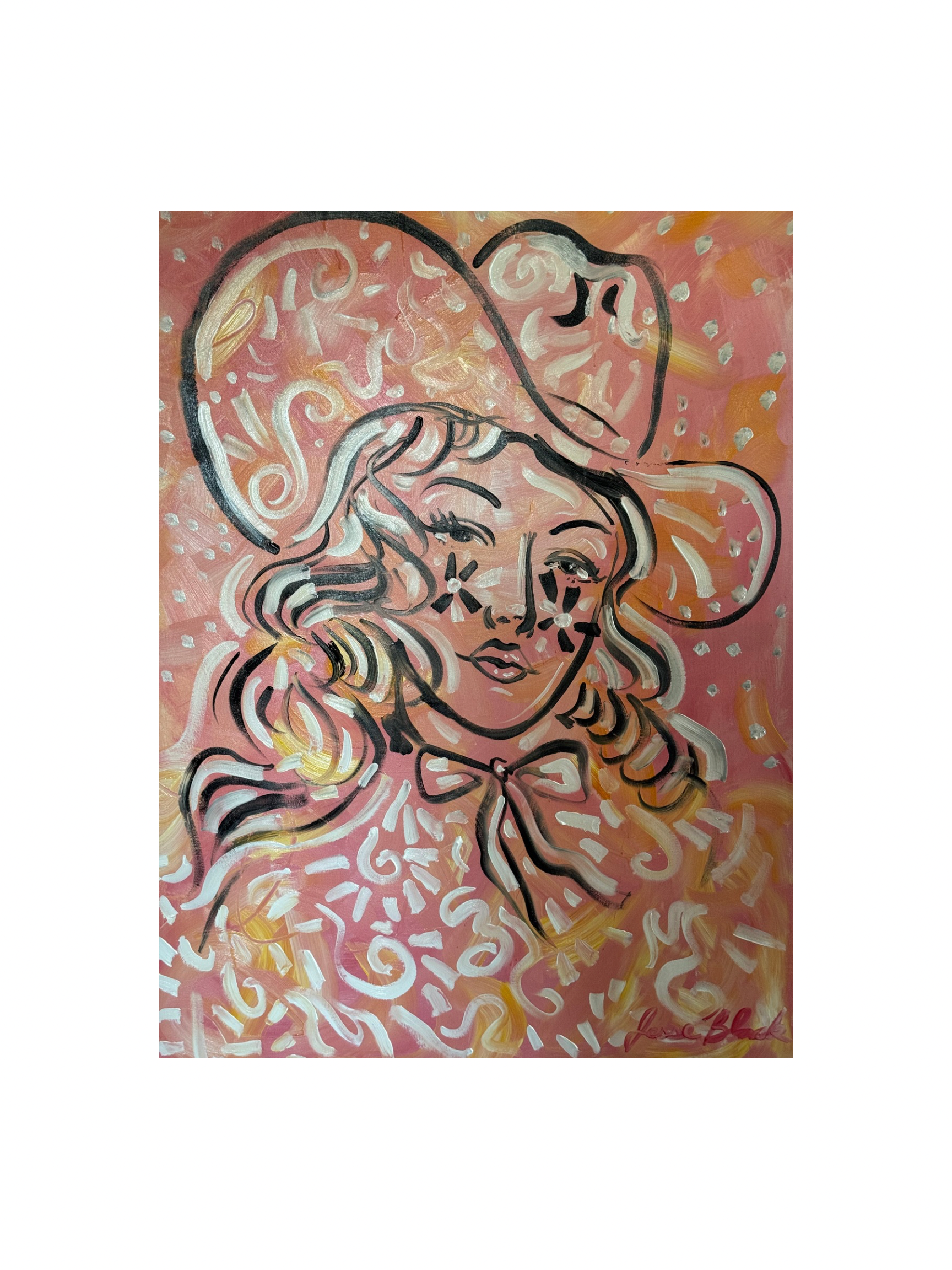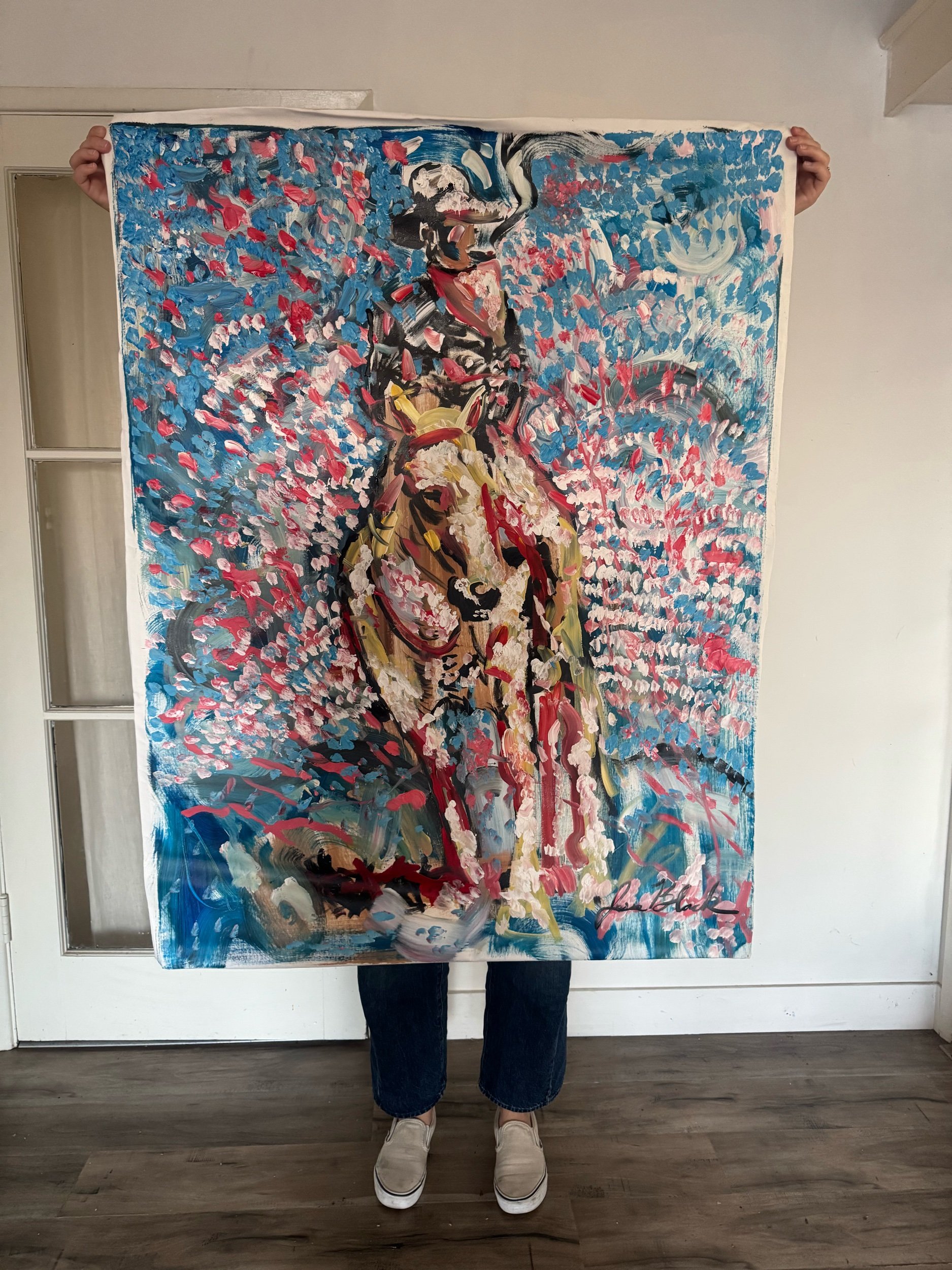 Large-format original by Jesse Black. Ships rolled with a 2-inch fabric border around the art for easy stretching or framing.