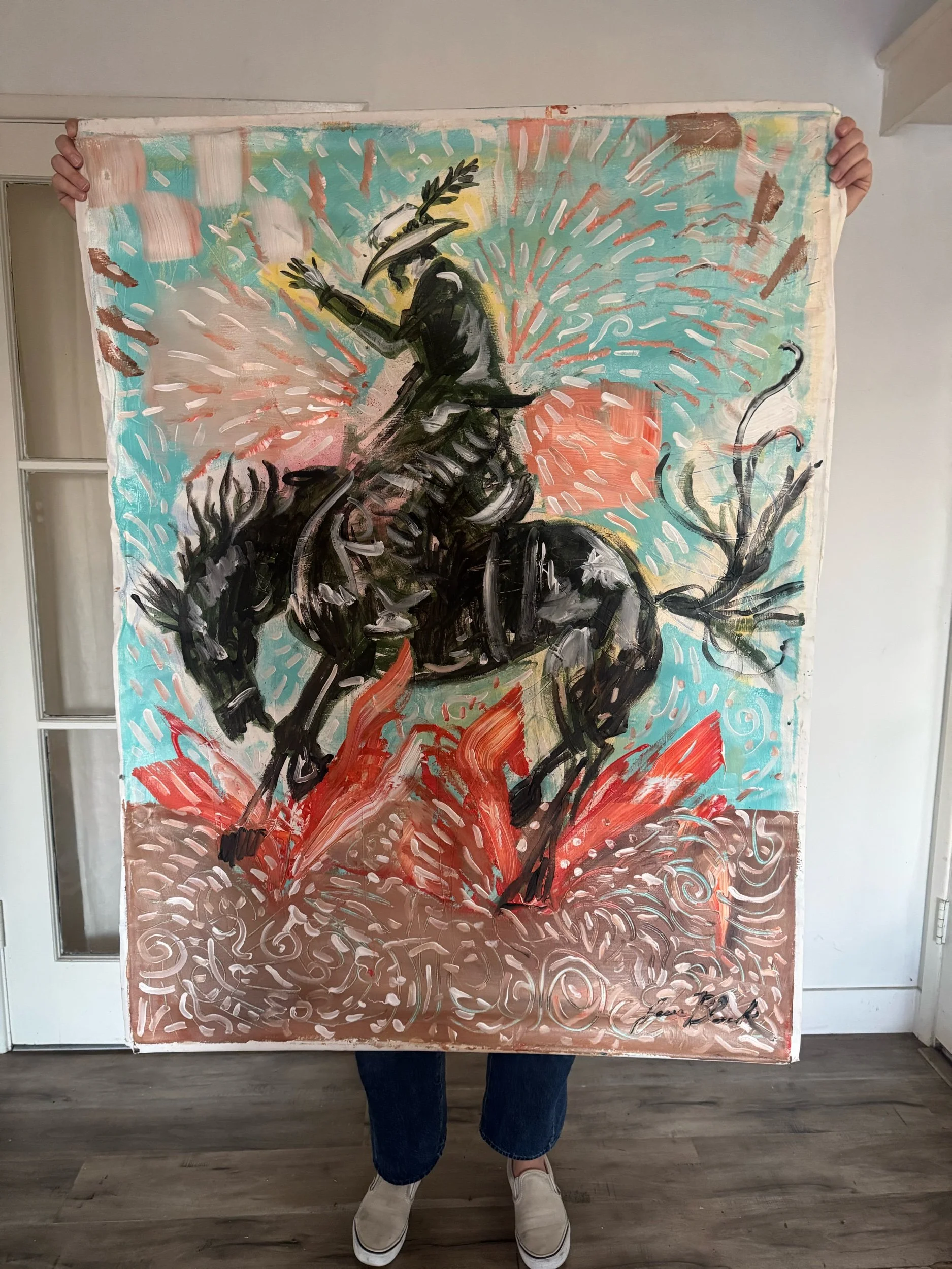 Cowgirl Sunset - 36x48 Original on Canvas (Unstretched)